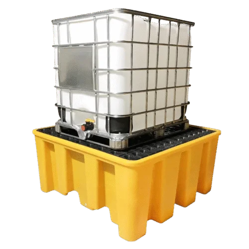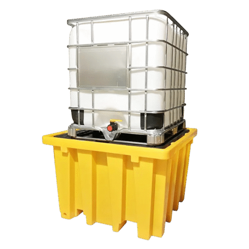 UPQUARK IBC pallets offer sump capacities up to 1600 liters, compliant with EPA, SPCC, and international regulations.
